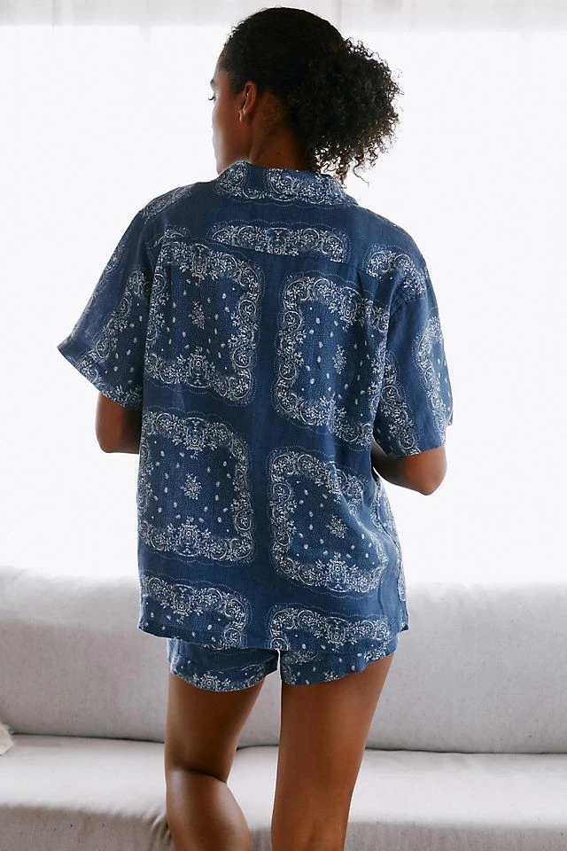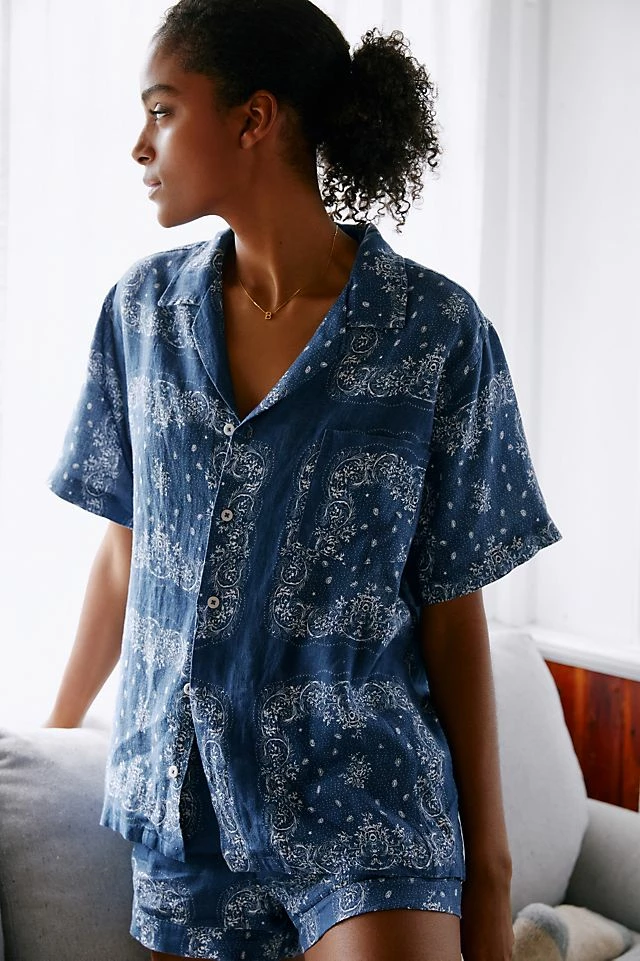 - Includes button-front top and pull-on shorts