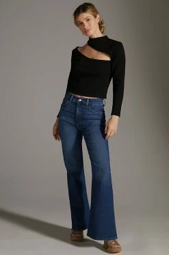 - Straight, flared fit