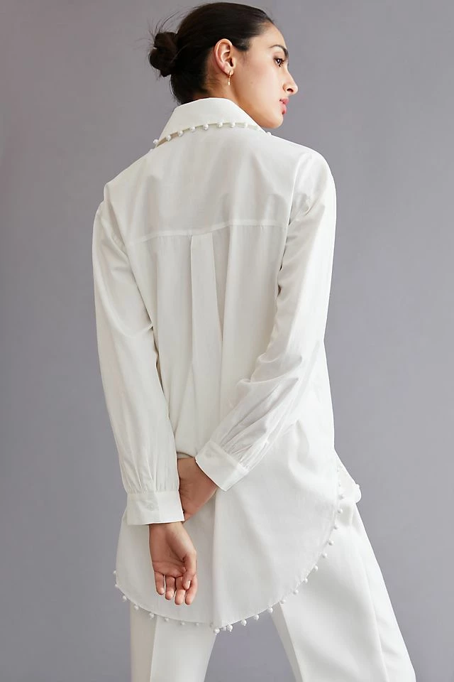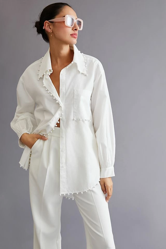 Playful and polished, this classic buttondown is adorned with elegant pearl embellishments.